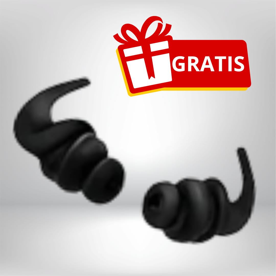 Estuche, cargador, batería y tapones para oídos incluidos. |